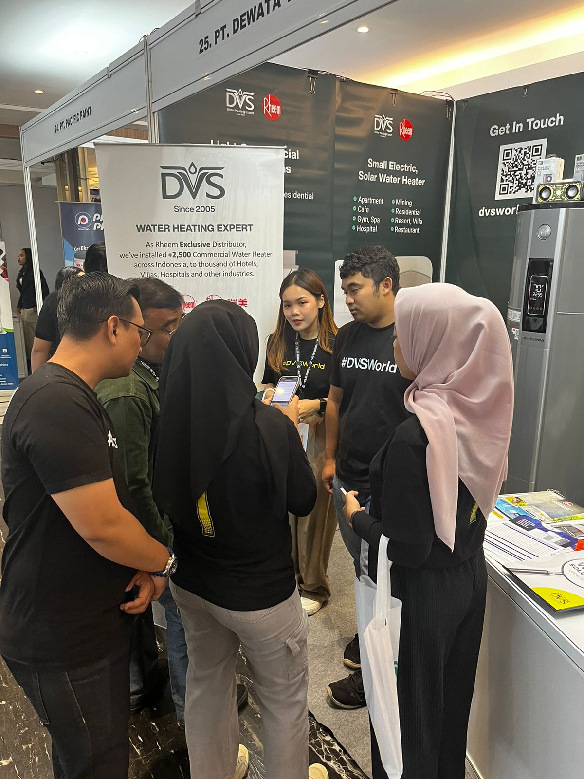Pengunjung yang datang ke booth DVS tidak hanya mendapatkan informasi mendalam mengenai produk Rheem Water Heater, tetapi juga mendapatkan kesempatan untuk berkonsultasi langsung dengan para ahli dari DVS. Sesi ini menjadi peluang bagi para engineering untuk mendapatkan solusi terbaik sesuai dengan kebutuhan spesifik properti mereka.
