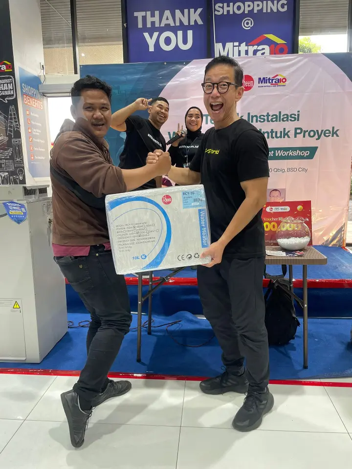 Untuk menambah semangat dan antusiasme peserta, acara ini juga menghadirkan program Grand Prize berupa Water Heater RCY dari Rheem. Grand Prize ini diberikan kepada kontraktor yang berhasil menjawab pertanyaan. Inisiatif ini diharapkan dapat mendorong kontraktor untuk terus meningkatkan keterampilan mereka dalam instalasi produk-produk water heater dan heat pump berkualitas tinggi.